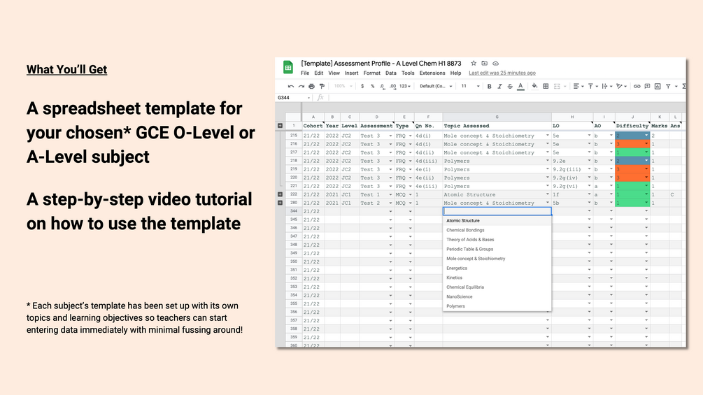 - A spreadsheet template for your chosen* GCE O-Level or A-Level subject